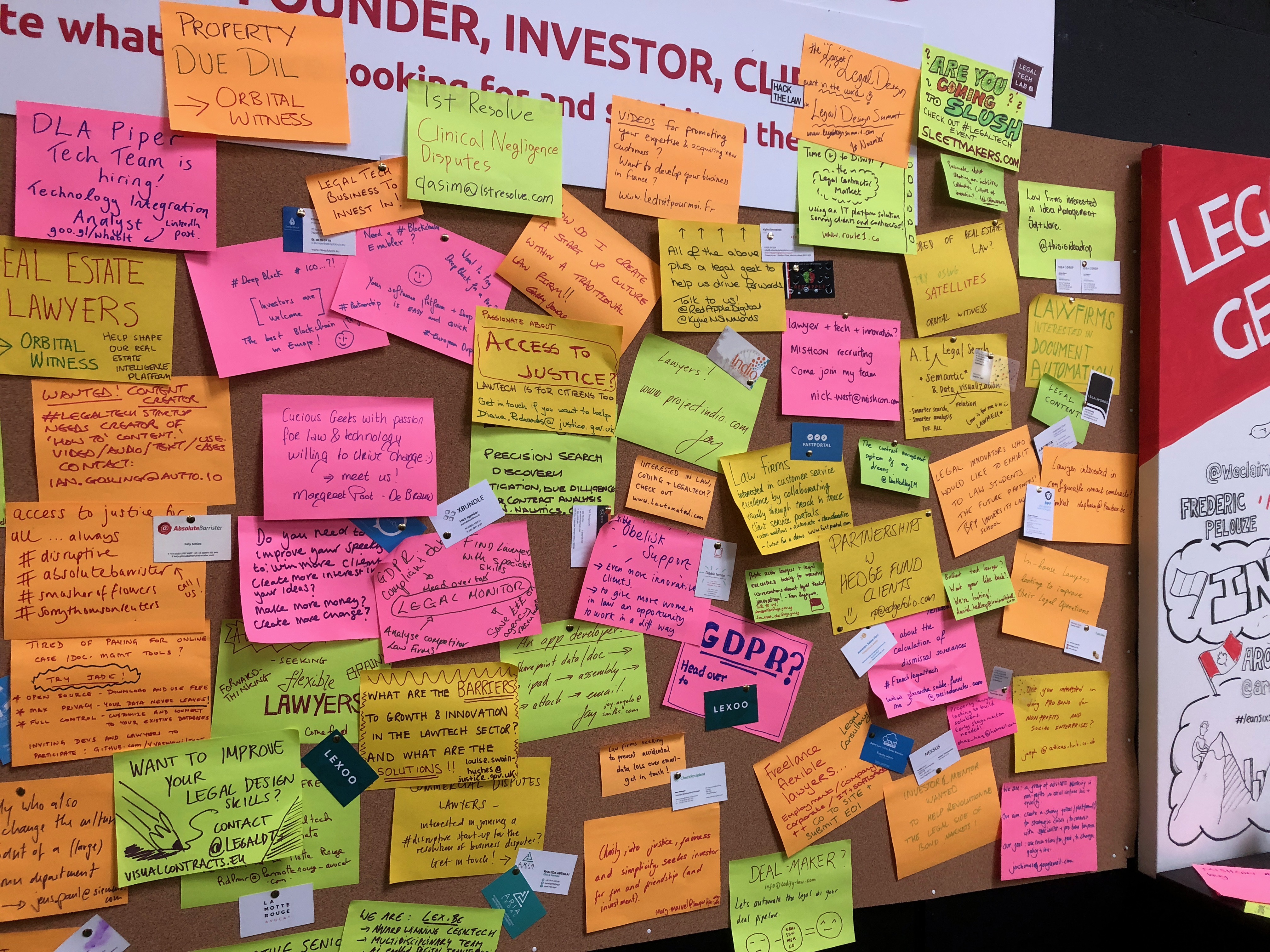 Era el sistema elegido por la Law Society para facilitar el contacto entre muchos de los allí presentes. Las herramientas eran post-its de colores y un mensaje pidiendo algo, presentándose o buscando algún contacto concreto.